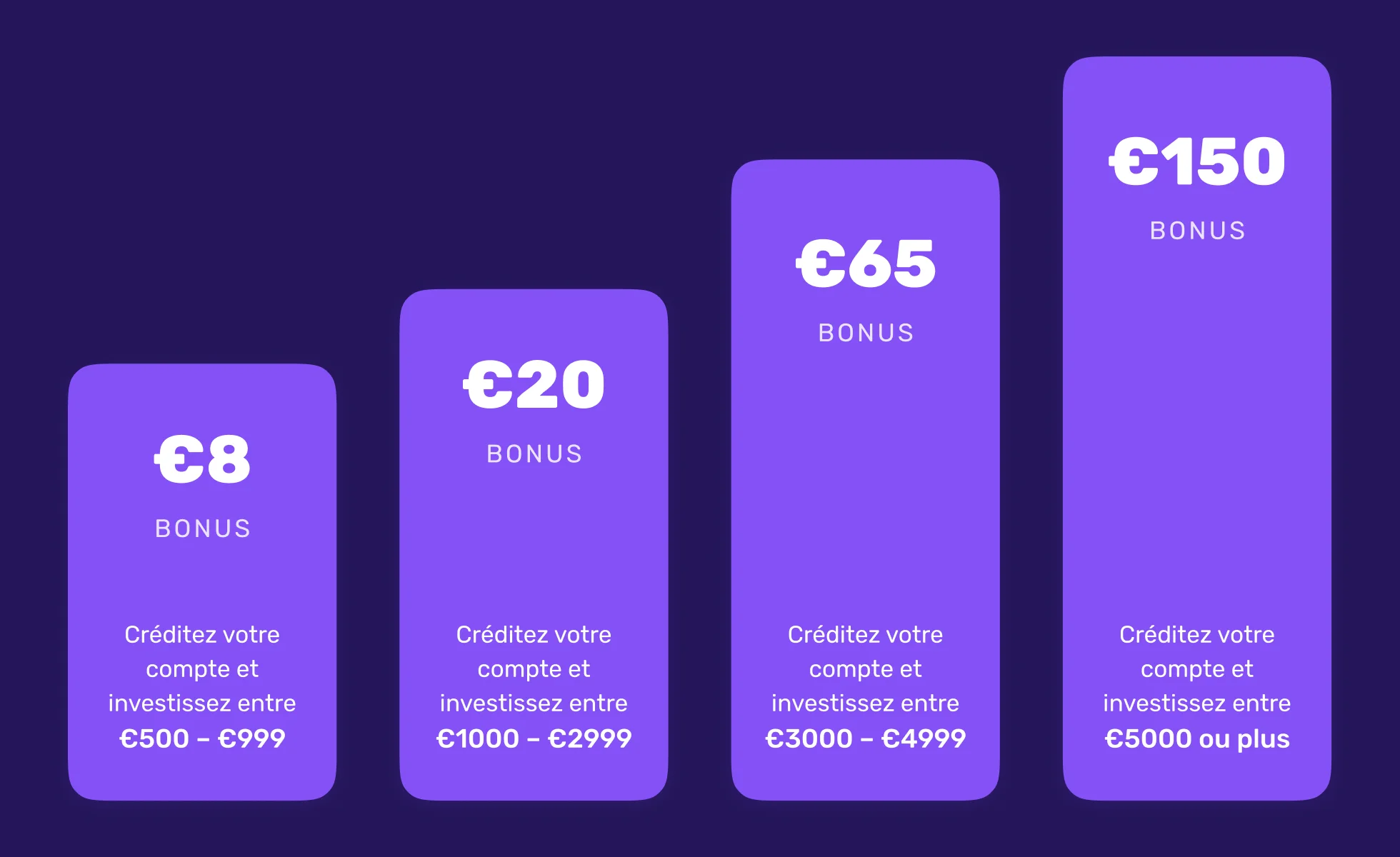 Boostez vos investissements tout en profitant de l’été. Nous avons le plaisir de vous proposer la campagne Été au max. Cette offre à durée limitée vous permet d’obtenir jusqu’à 150€ de bonus lorsque vous investissez dans les prêts de votre choix auprès de nos émetteurs de prêts de confiance. Plus vous investissez et plus le montant de votre bonus sera élevé.